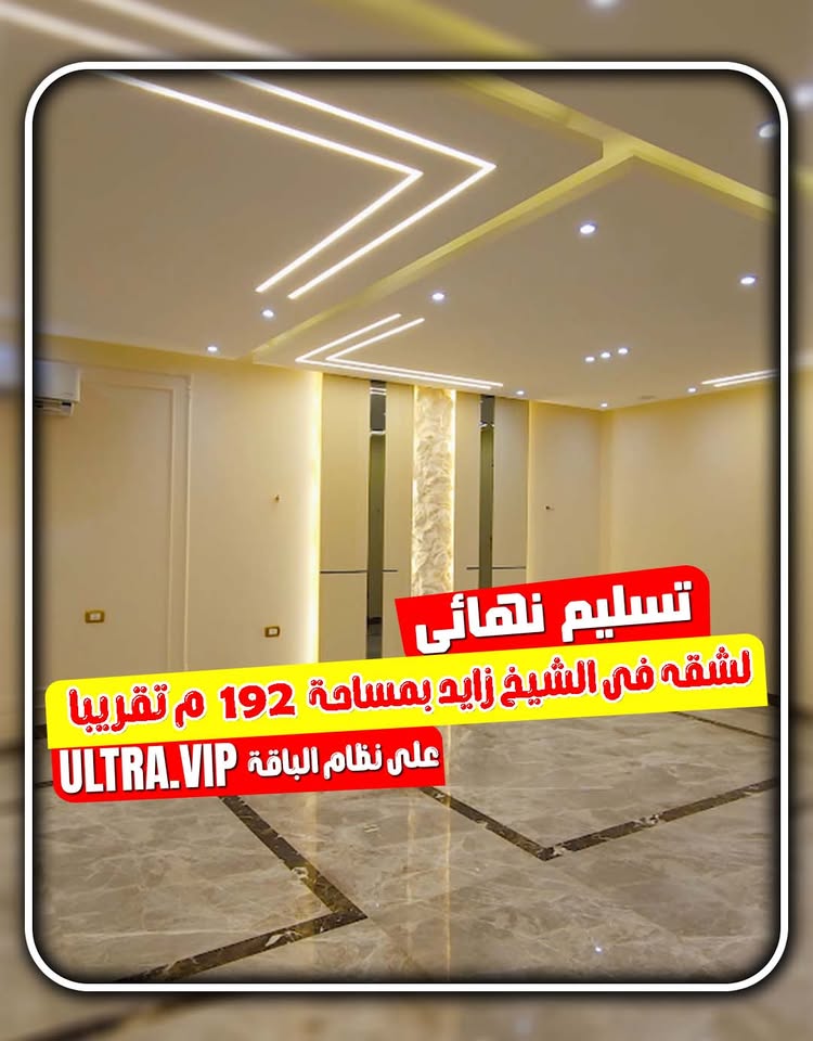 تسليم نهائي لشقة في الشيخ زايد بمساحة “𝟏𝟵𝟮”م تقريبا علي نظام الباقة”𝐔𝐋𝐓𝐑𝐀.𝐕𝐈𝐏” ❤️✨